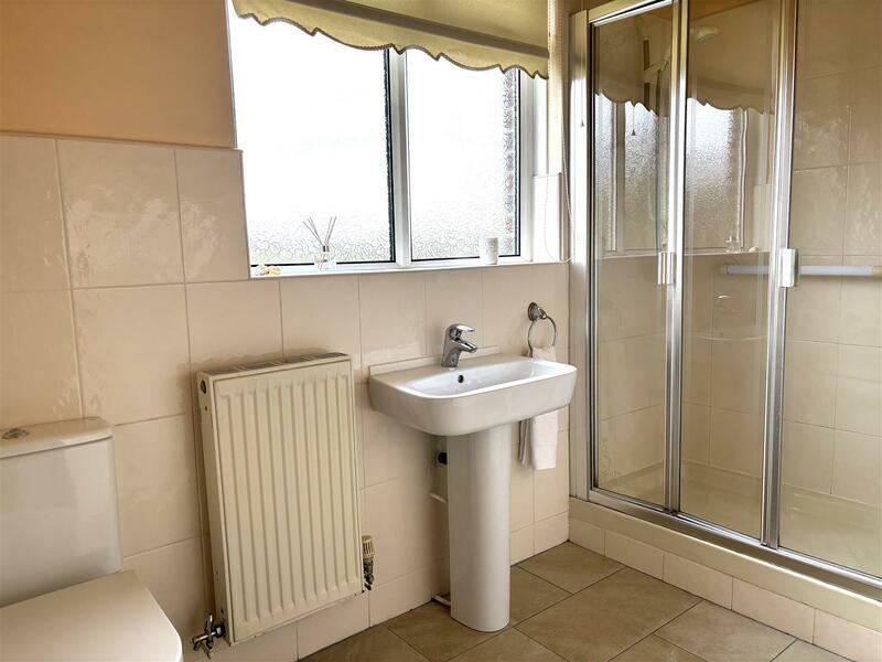 Double glazed opaque window to rear. Fitted with a step in fully tiled shower cubicle with Mira Sport electric shower and folding shower doors. pedestal wash hand basin and low level w.c. Part tiled walls and tiled floor. Radiator.