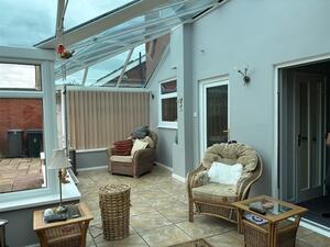 The Conservatory which is "P" shaped, extends along the back of the property. Fully glazed, including the roof, this lovely light spacious room enjoys views over the extensive gardens, and farmland beyond. Tiled floor. Radiator. Toshiba air conditioning unit.