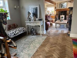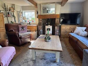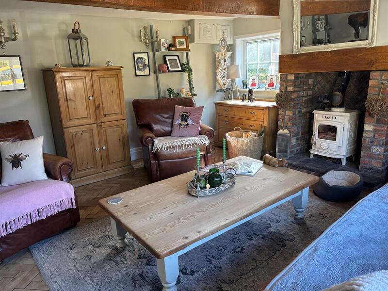 Double glazed windows to front and side. Cream wood burning stove set in fireplace with oak mantel and stone flagged hearth. Parquet flooring. Radiator. Spindle staircase to first floor accommodation.