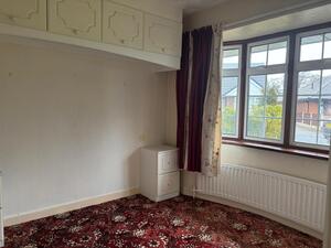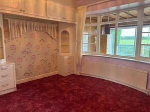 Double glazed bow bay window to front. Fitted with a range of built in wardrobes, overbed storage cupboards, bedside units and drawers. Radiator.