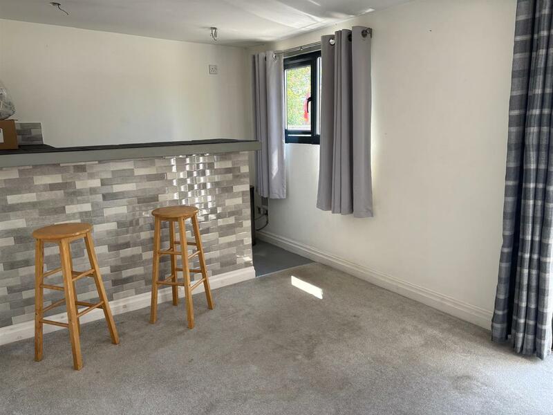 Double glazed window to front. Cast iron wood burning stove set in exposed brick fire surround. Built in meter cupboard to chimney recess. Radiator.
