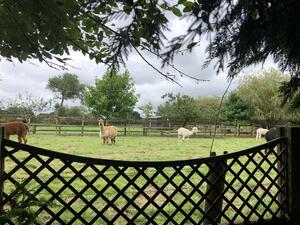 To the rear of the property is a paved patio area and good sized lawned garden with mature apple trees and shrub and tree borders. Wooden shed. Open views to rear.