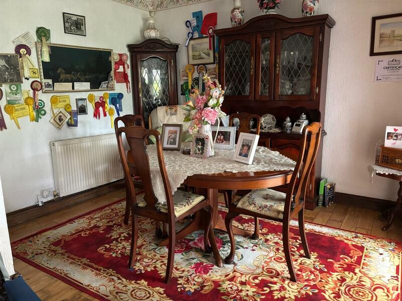 Double glazed window and double exit doors to rear. Fitted with a range of wall and base units and a newly fitted floor to ceiling range of full length storage units to one wall. Gas cooker point with extractor hood over. Plumbed for automatic washing machine and space for under counter fridge and freezer. Tiled floor.