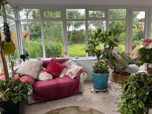 Benefiting from a newly fitted solid roof, the double glazed conservatory overlooking the delightful gardens, has windows to three elevations and French doors to the rear. Radiator.