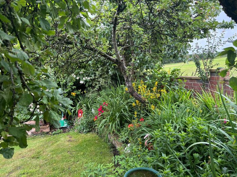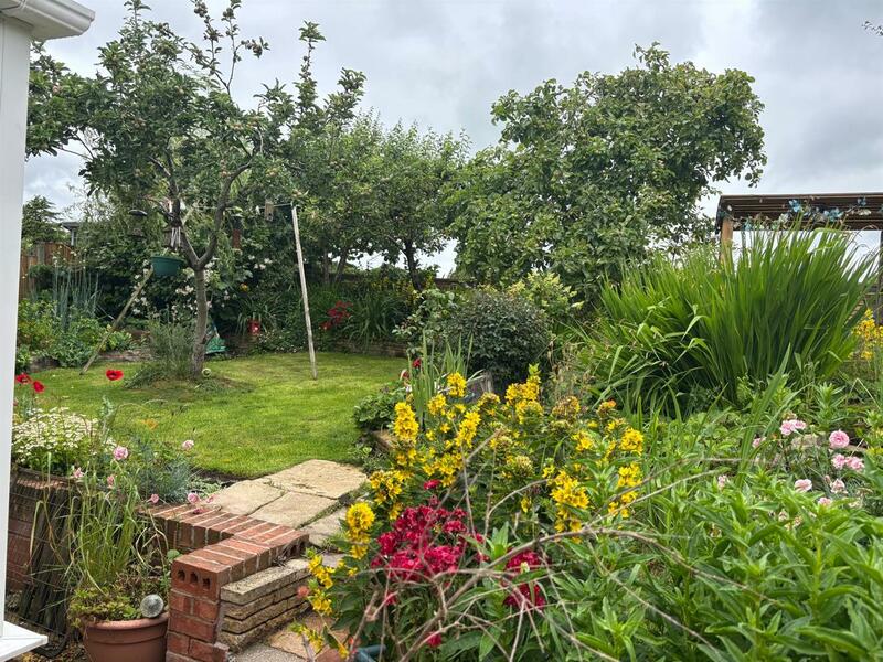 The delightful rear gardens enjoy open views over farmland. The garden has a central lawn with well stocked borders of shrubs, seasonal flowering plants, and currently an abundance of several varieties of vegetables and fruit. There are apple trees, a fig tree, a grape vine and a kiwi vine. An ornamental pond is on a raised patio area with seating area plus storage shed and greenhouse.