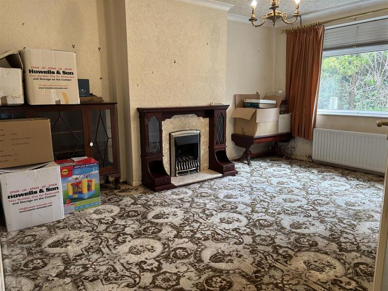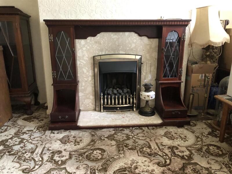 Double glazed window to front. Feature wooden fire surround with glazed display shelving to sides, marble back and hearth and housing living flame gas coals fire. Radiator.